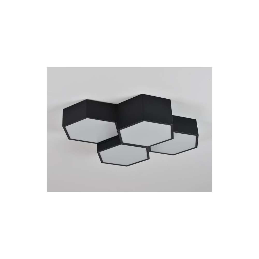 Nowoczesne sufit LED Favo 4 LED dużej mocy 48W w kolorze czarnym. Lampy wykonane w technologii LED z możliwością zmiany barwy światła w lampie i funkcję ściemniacza. Wszystkie inne funkcje są sterowane dostarczonego lampy zdalnego sterowania.