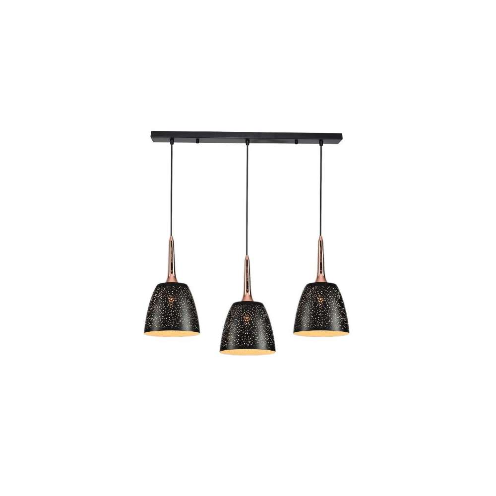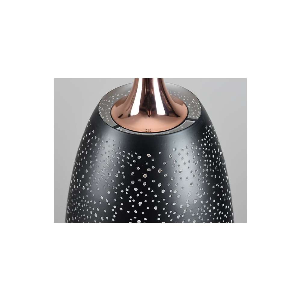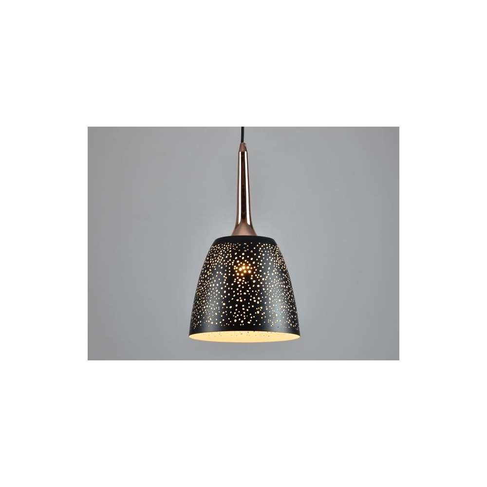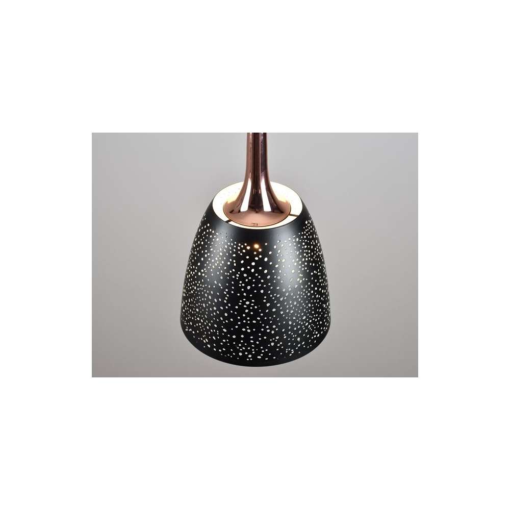 Oryginalny i nowoczesny żyrandol z serii oryginalnych Spectrum dyfuzorów ażurowych w czerni i miedzianymi dodatkami.