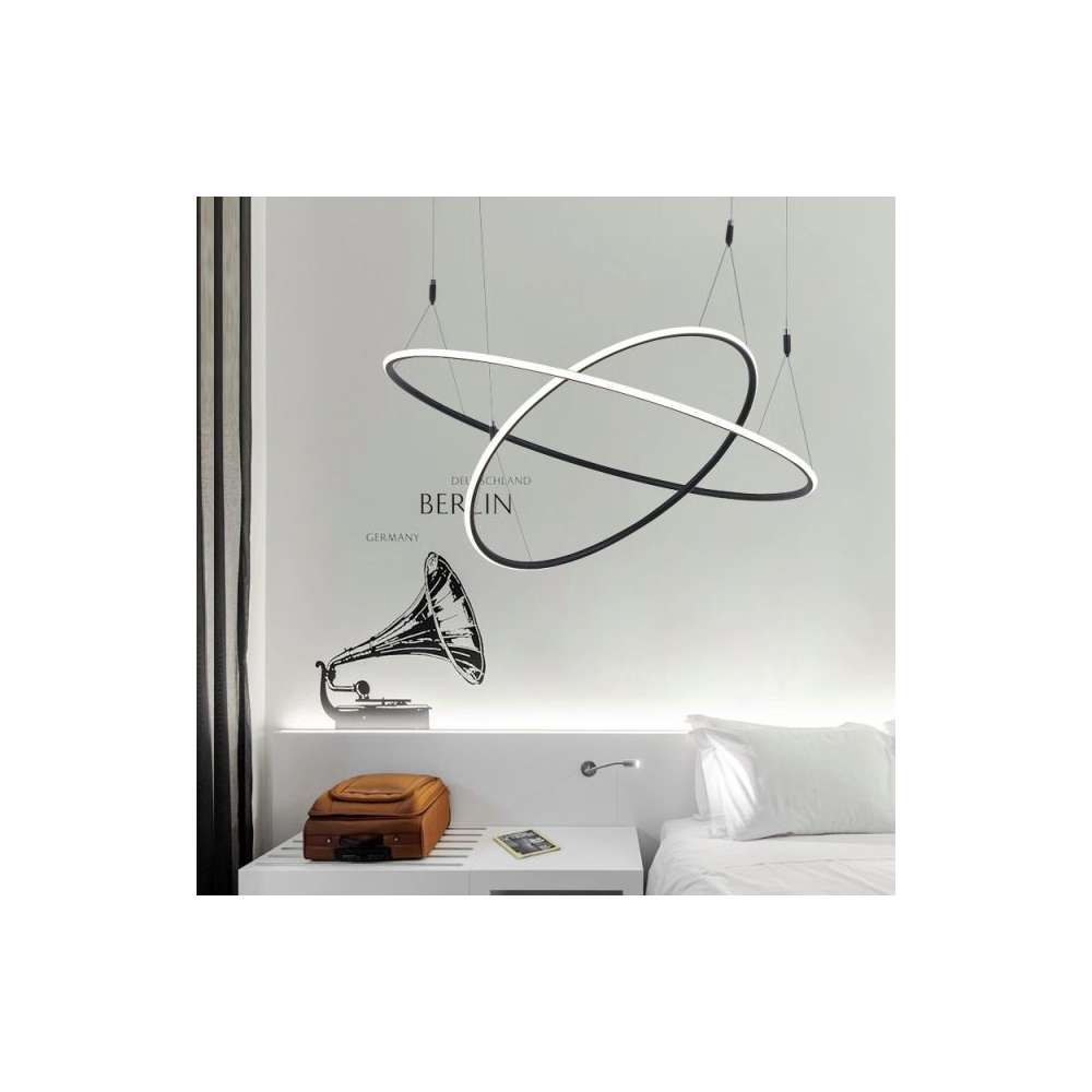 Projektant i nowoczesne zawieszenie Milano 2 z technologią LED dużej mocy światła 75W czarny matowy kolor i ciepłe 3000K, szczególnie zalecany do nowoczesnych wnętrz lub biurze.