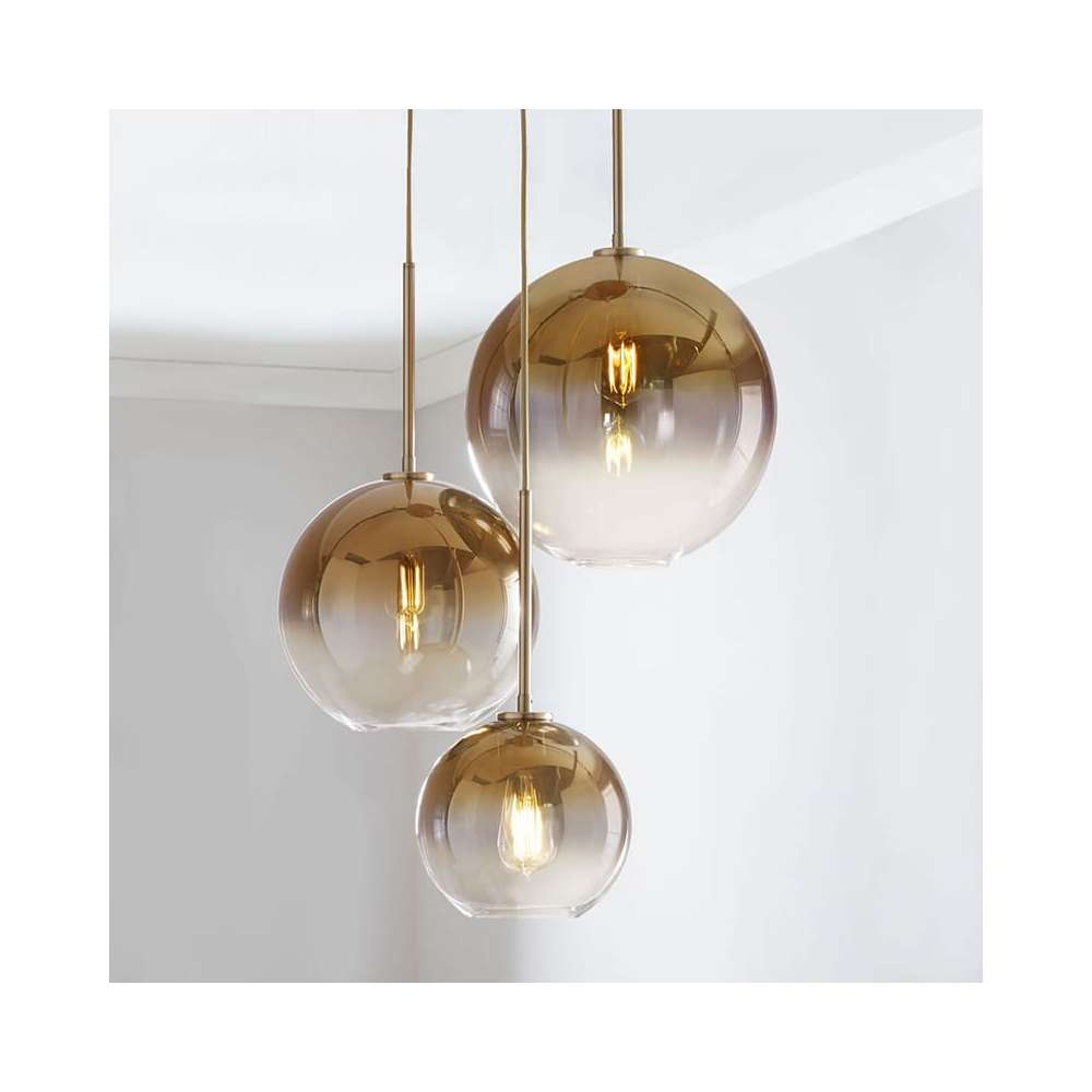 Lustro kulki zawieszka nowoczesny strych również dostępna opcja srebra Typ: średnica zawieszenia klosza: 300 mm Długość zamocowania do sufitu, 450 mm (obiektyw + część sztywna) + 900 mm, rura (można skrócić) podsufitkę średnica: 120 mm wysokość podsufitki: 25 mm Materiał: metal, szkło Kolor: mosiądz / szkło bezbarwne, górna część galwanicznie źródło światła: żarówka z E27 (żarówka nie jest w zestawie) Uwaga: sprzedaż jest pojedyncza lampa. Widoczne na fotografii pozostałych części elementów oświetleniowych przykład układu.