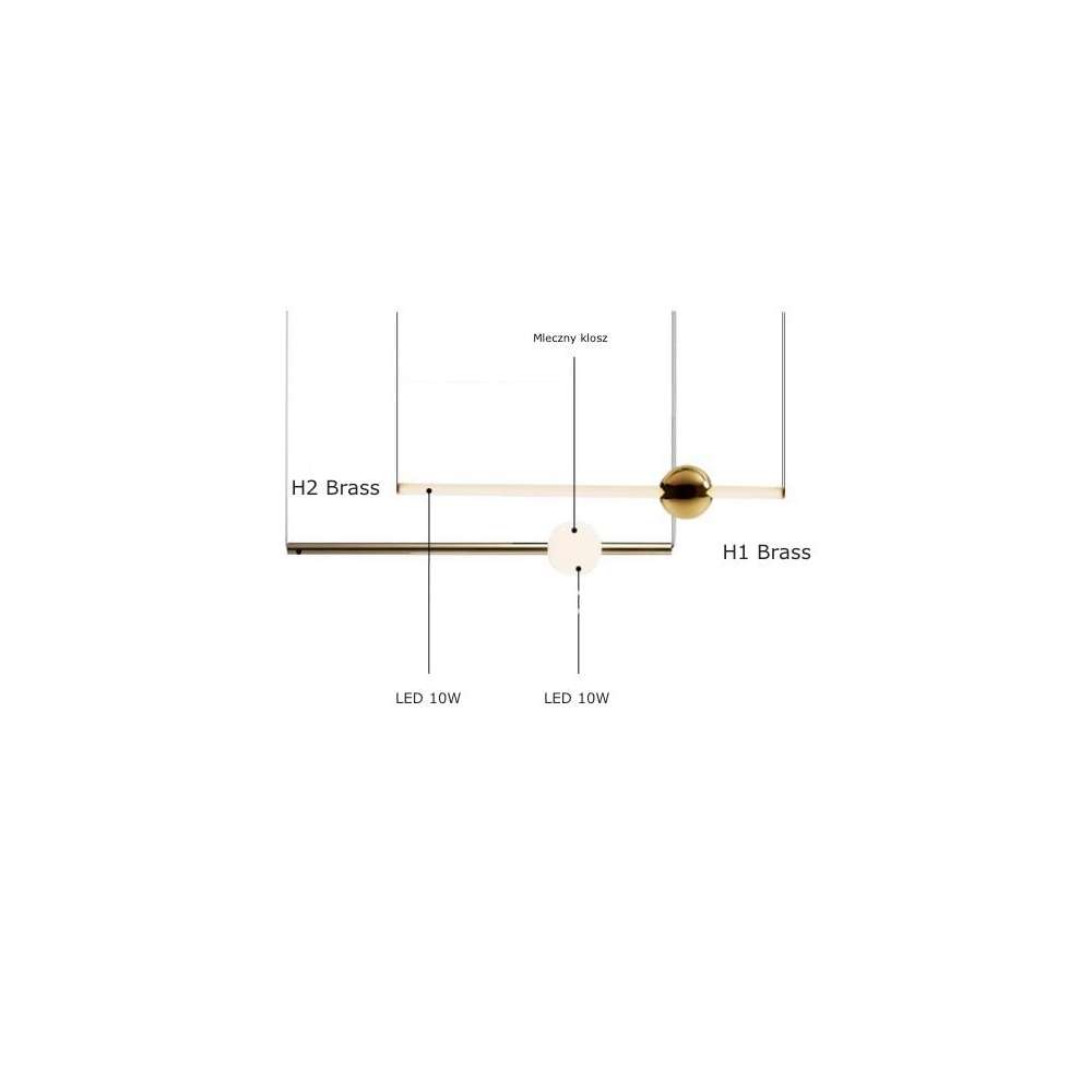 Paluszki z serii czterech lamp wiszących 2 poziomej (H) i dwóch pionowych (V) wersja H1 i V1 z metalowym rdzeniem i kulki szklane (składnik zawierający źródło światła) w wersji H2 i V2 rdzenia szkła (element zawierający światło źródło), i kulki w kolorze mosiądzu Pałeczki H1 mosiądzu Typ: szerokość zawieszenie: 100 mm (kula) Wysokość: 600 mm Długość zamocowania do sufitu: 1500 mm (można skrócić) wykonana z metalu, szkła Kolor mosiądz wyroby szklane źródło światła LED ogrzania 10W oferta biały obiekt jedna lampa jest oznaczony na zdjęciu jako główny H1. Inne rozwiązania są przykładem.