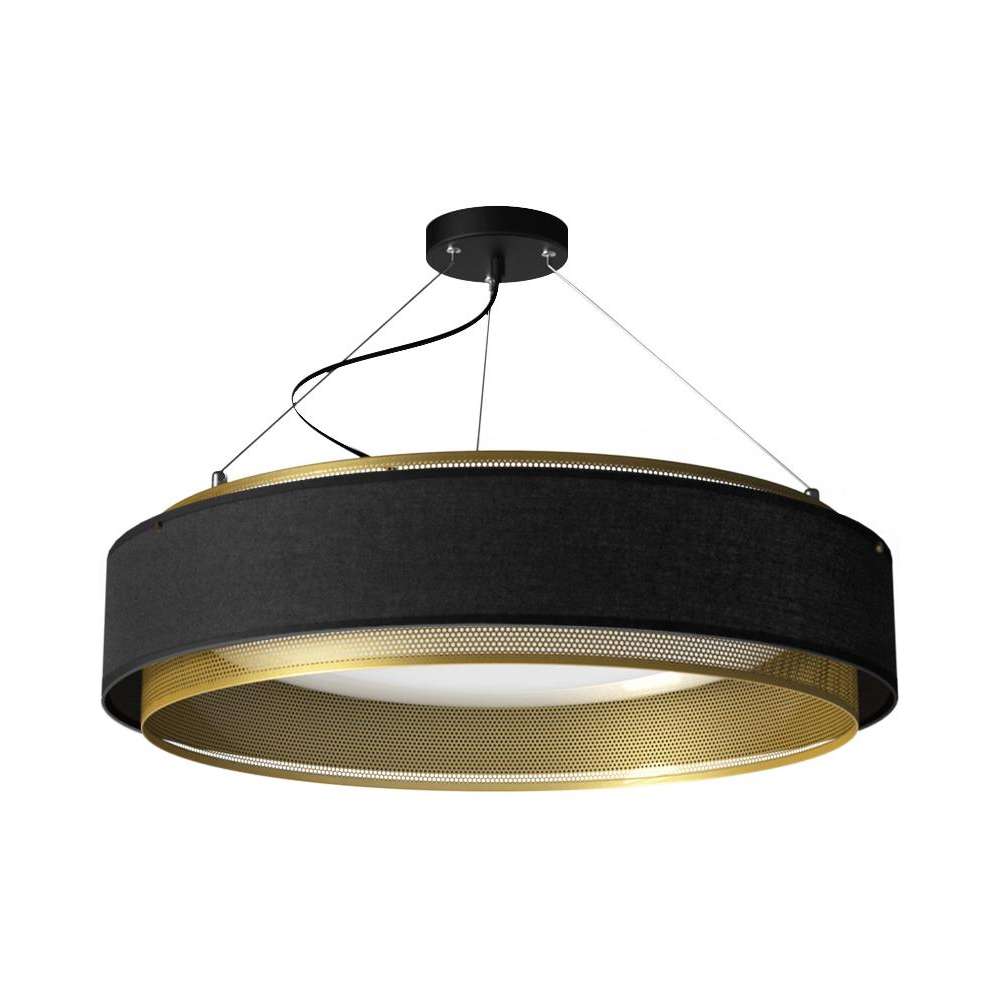 Perfo kolekcji nowoczesnych lamp z abażurami z perforowanej blachy w kolorach czerni i złota. Żyrandol Perfo nowoczesny żyrandol LED Typ: wisiorek, świecznik Średnica klosza: 620 mm Wysokość: 150 mm Długość: 1000 mm zawieszenie (można skrócić) Materiał: Metal Kolor: + źródło światła LED czarne złoto, 36W, 3000K