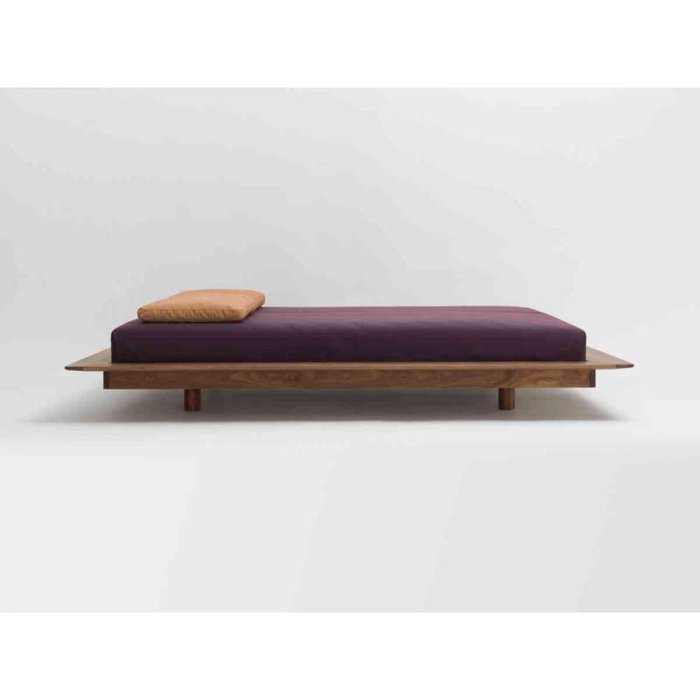 YOMA wydaje się unosić. Łóżko wyróżnia się niską ramą. Długi bok łóżka służy jako półka, jednym z detali kunsztu jest fala, która służy jako drewniane połączenie. Dzięki zaokrąglonym rogom łóżko wydaje się miękkie i zachęcające. Materac opada tylko o kilka centymetrów