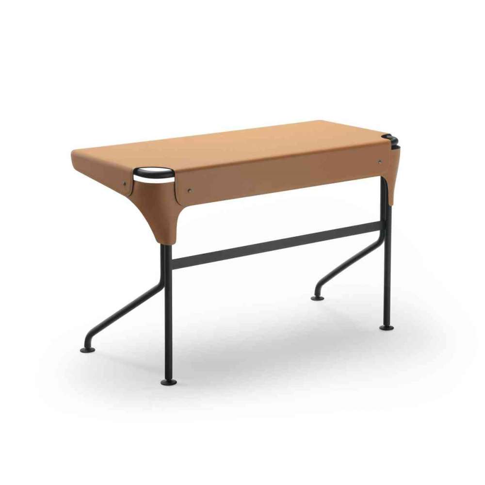Matowa stalowa rama lakierowana na czarno. Wierzch pokryty bydlęcą skórą pigmentato 90.