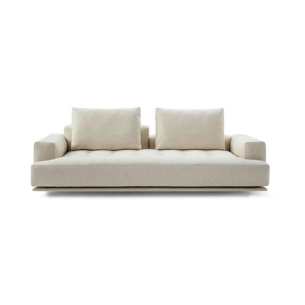 Zainspirowana oszczędną prostotą tradycyjnego japońskiego futonu, ta sofa przywołuje wygląd gruby wyściełany materac spoczywający na tapicerowanej drewnianej podstawie. Wyrafinowany, pikowany motyw ogranicza obszerną poduszkę siedziska, ozdobioną krawieckim detalem ręcznie robionych guzików w subtelnych odcieniach tapicerki. kompozycja architektoniczna stworzona z harmonijnie kontrastujących materiałów, wykończeń i kubatur.