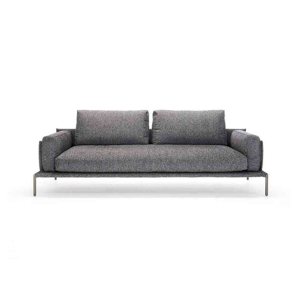 Stalowe nóżki, z błyszczącym czarnym wykończeniem niklowo-satynowym lub lakierowanym grafitem. Stalowa rama. Jednoczęściowa poduszka siedziska ze stopniowanego poliuretanu/regenerowanego i nadającego się do regeneracji płatków poliestrowych. Poduszka oparcia w 100% nowych gęsich pierzach. Poduszka podłokietnika z regenerowanych i nadających się do regeneracji płatków poliestrowych. Zdejmowane pokrycie z tkaniny lub skóry. Panele boczne pokryte są tą samą tkaniną lub skórą co poduszki. Proste i zakrzywione sofy końcowe mogą być wyposażone w poduszkę podłokietnika lub tacę wykonaną z litego jesionu pomalowanego na czarny mat z otwartymi porami, umieszczoną na podstawie nośnej sofy.