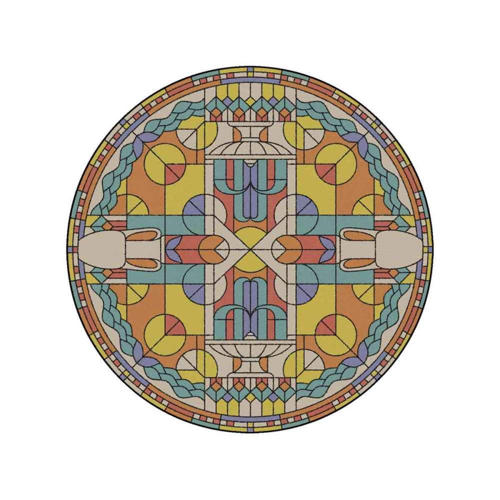 Kolekcja dywanów inspirowana urokiem witraży. Kolorowe kawałki szkła układają się w ikonograficzne wzory, połączone czarnym konturem, pozytywnie przekształcając wnętrze, wprowadzając kolor i światło do ciemnego wnętrza. Zamiast być narzędziem nauczania dla analfabetów, dywany te szerzą przesłanie miłości.