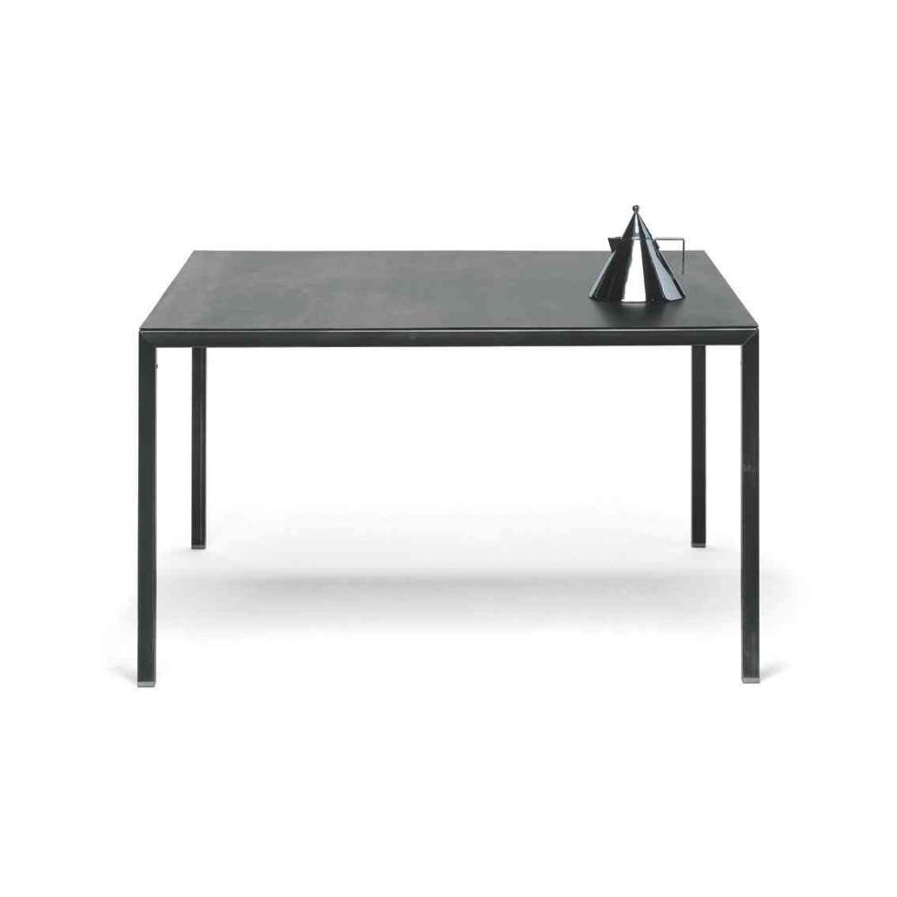 Stół prostokątny lub kwadratowy. Metalowa konstrukcja ramy i blat w specjalnym wykończeniu naturalnym woskiem. Dostępne również w niestandardowych wymiarach.