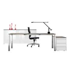 Rezultat: w dzisiejszych czasach biurko musi być czymś więcej niż stołem. To musi być wyrafinowany, przemyślany system, za pomocą którego można zaprojektować i zorganizować swoje biuro bardzo indywidualnie – wielofunkcyjny, modułowy i o wielu wariantach, ergonomiczny i wygodny w użyciu.