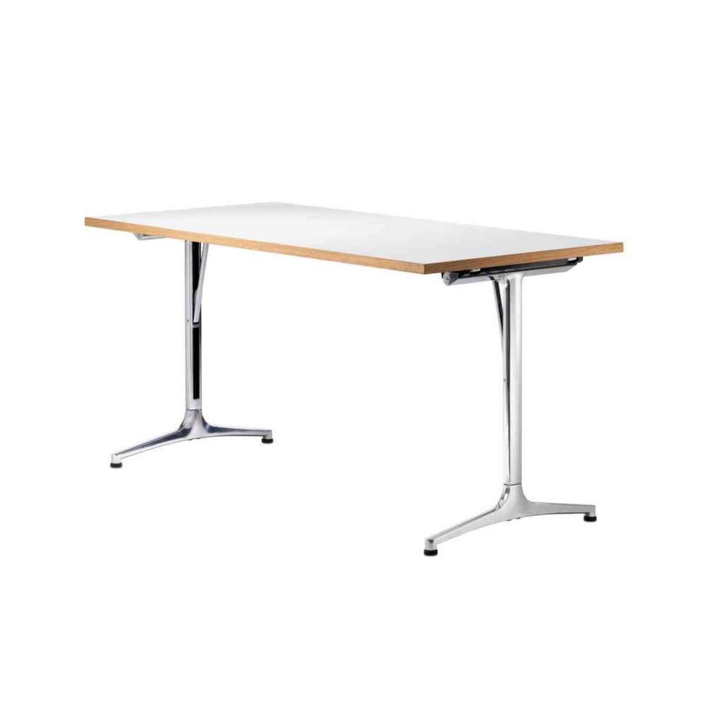 Liczne materiały blatów, powierzchni i krawędzi pozwalają na ogromną różnorodność pod względem funkcji: od wytrzymałych modeli startowych z bezpośrednio powlekaną sklejką, przez laminaty, po wysokiej jakości fornirowane blaty. W zależności od tego, jak często stoły są ponownie składane, a także od koncepcji zarządzania obiektem i projektu, istnieje wybór prostych krawędzi PP, prostych lub podwójnych krawędzi drewnianych ze zintegrowanymi profilami odpornymi na uderzenia lub elegancko fazowanych krawędzi. Gama MAX light obejmuje lekkie blaty, co jest bardzo praktyczne, zwłaszcza jeśli stół jest często składany. Mechanizm składania i podstawy w kształcie litery T z odlewanego ciśnieniowo aluminium są stabilne i wytrzymałe. Dzięki precyzyjnym promieniom i powlekanym, polerowanym lub ultrapolerowanym powierzchniom projekt wyraża uznanie dla osób korzystających ze stołu. Akcesoria do systemu stołów składanych to panele skromne, łączniki stół-stolik, dodatkowe zasilacze oraz wózki czterokołowe.