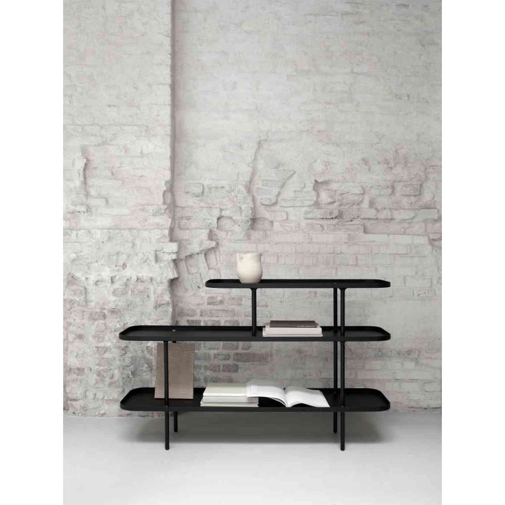 Stal malowana proszkowo na czarno i aluminium z mosiężnymi detalami.