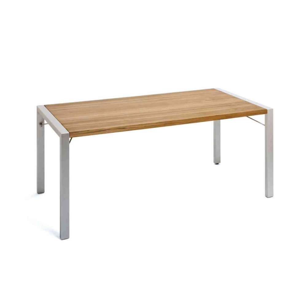 Składana rama wykonana ze stali nierdzewnej. Blat, lite naturalne drewno tekowe.