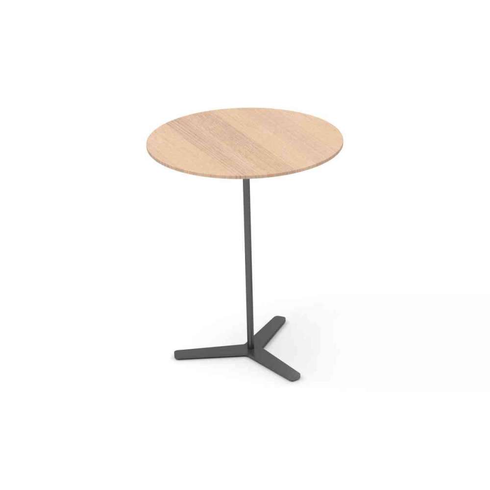 Eleganckie, łatwe i praktyczne: stoły Tre mają cztery kontrastujące wysokości i różnej wielkości talerze, dzięki czemu pasują do wielu sytuacji życiowych. Podstawa wykonana jest z litej stali, zapewniając solidną, stabilną podstawę, w której elegancka rura sięga aż do wytrzymałego blatu z litego drewna dębowego. We współpracy z MOX AG.