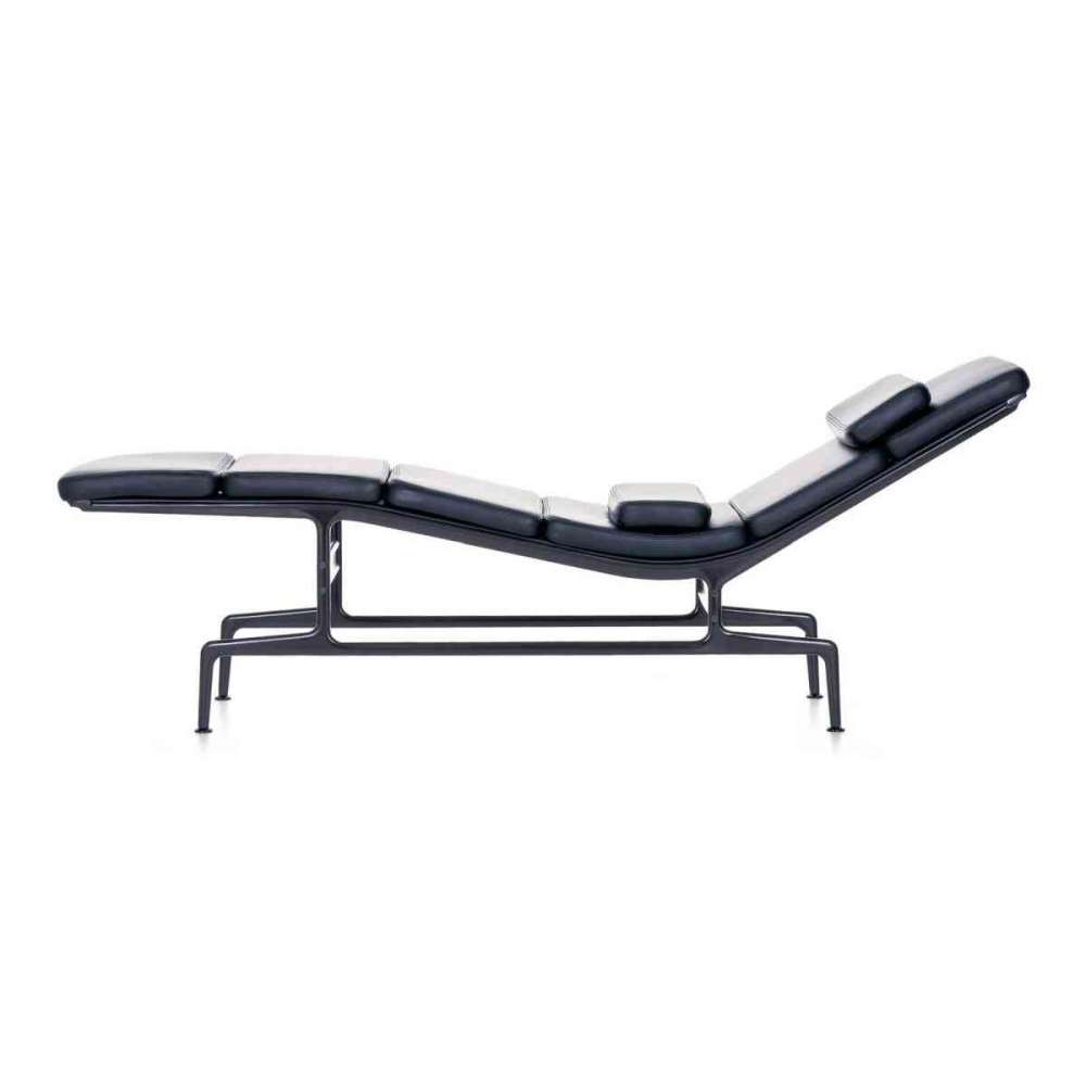 Pomysł na ten projekt wyszedł od długoletniego przyjaciela Charlesa i Raya Eamesa, reżysera filmowego Billy'ego Wildera, który szukał fotela do relaksu i krótkich odpoczynków. Sześć poduszek połączonych ze sobą zamkami błyskawicznymi jest przymocowanych do aluminiowej ramy, a dwie luźne poduszki zapewniają dodatkowy komfort. Na podstawie tego doświadczenia udzielamy obecnie 30-letniej gwarancji na wszystkie krzesła z grupy Soft Pad. dopasowane do skórzanych okładek. W przypadku wersji skórzanej asfaltowej nakładki oparć są ciemnoszare, w przypadku skóry czekoladowej są brązowe, a w przypadku skóry marron brązowej, w przypadku skóry piaskowej fioletowo-szarej, w przypadku skóry śnieżnobiałej, w przypadku skóry glinianej w kolorze kamienia, w przypadku skóry oliwkowej i wielbłądziej w kolorze kawowym . Tylna okładka ze skóry dostępna za dodatkową opłatą.
