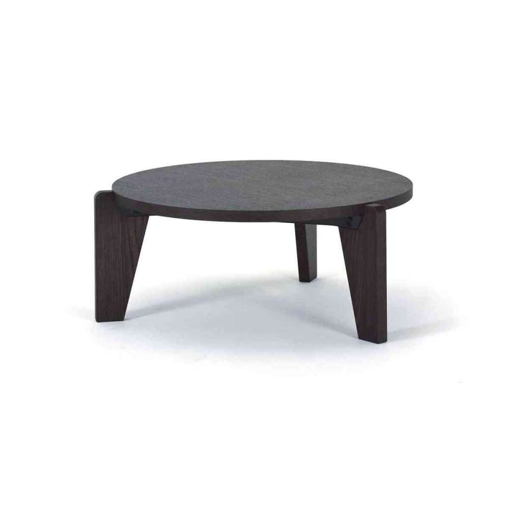 We wczesnych latach czterdziestych Jean Prouvé coraz bardziej zwracał uwagę na drewno jako materiał. W przypadku stolika kawowego Guéridon Bas solidny blat osadzono na trzech solidnych dębowych nóżkach. Elementy połączone są ze sobą za pomocą złożonej konstrukcji z blachy. Nawiązując do ówczesnej wersji drewna tropikalnego zatytułowanej „Table Africaine”, ta reedycja dostępna jest również w impregnowanym ciemnym dębie. lakier o wyglądzie naturalnego drewna