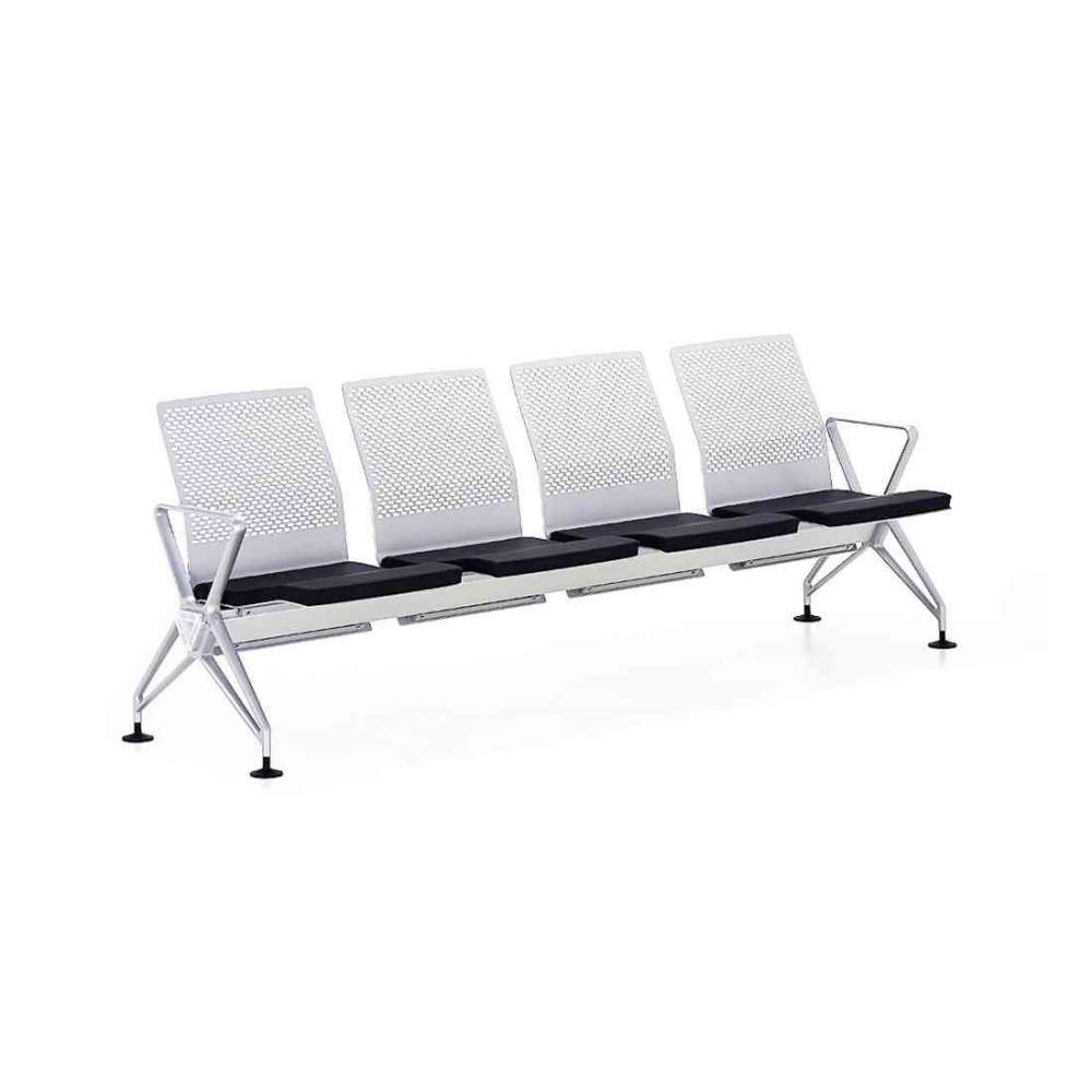 AIRLINE to elastyczny i solidny system poczekalni. Wszystkie jednostki można szybko i łatwo montować, demontować i przestawiać (za pomocą jednego śrubokręta). AIRLINE jest łatwy w czyszczeniu i pielęgnacji, spełniając wymagania stawiane systemom siedzisk do miejsc publicznych. Stolik boczny - uzupełniający kolekcję AIRLINE - posiada odporny na pęknięcia blat wykonany z materiału solid-core. Wspólnie z firmą Vitra opracował system poczekalni AIRLINE. Podstawowa idea: wytłaczana aluminiowa belka, która spoczywa na stopach z odlewanego ciśnieniowo aluminium. Elementy do siedzenia, podłokietniki i blaty można łatwo zamontować na tej stabilnej ramie. Zalety AIRLINE: wysoce ekonomiczne wykorzystanie przestrzeni i duża elastyczność. System jest solidny, a jednocześnie łatwy do czyszczenia, można go szybko zmontować i równie szybko zmienić konfigurację. Projekt jest powściągliwy i ma wyraźne linie. Liczne jednostki porządkują i dzielą przestrzeń