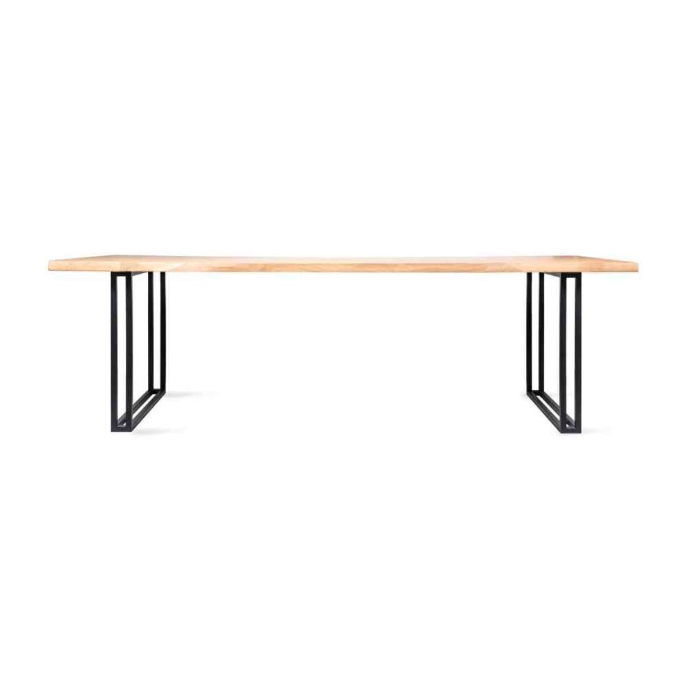 Materiały: lity dąb (lakierowany) | kwadratowa stalowa podstawa malowana proszkowo na czarno | blat z prostymi krawędziami