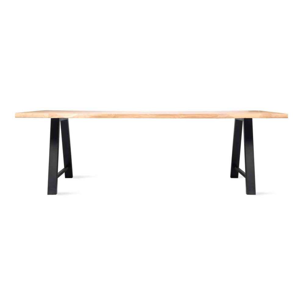 Materiały: lity dąb (lakierowany) | kwadratowa stalowa podstawa malowana proszkowo na czarno | blat z prostymi krawędziami