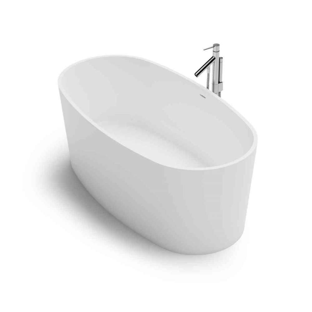 Wanna wolnostojąca o matowo-białej (alternatywnie: błyszcząco-białej) powierzchni, wykonana z materiału VELVET STONE™. Ręcznie uszlachetniana odlewana część wykonana z drobnego kamienia wapiennego i najwyższej jakości żywic.