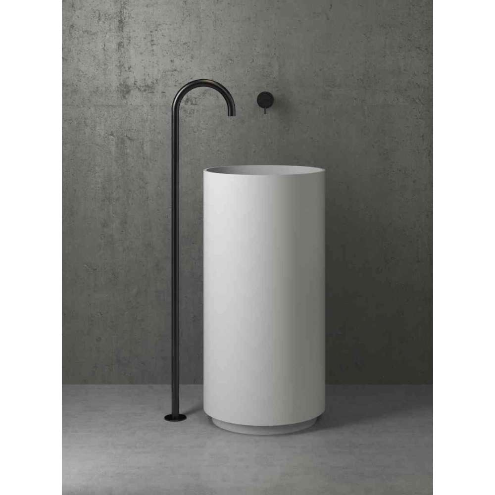 Wylewka umywalkowa stojąca, czarna powierzchnia (wysokość 1084 mm, długość wylewki 200 mm).