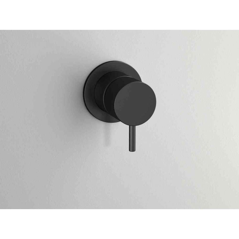 Podtynkowa bateria umywalkowa bez przełącznika, czarna powierzchnia.