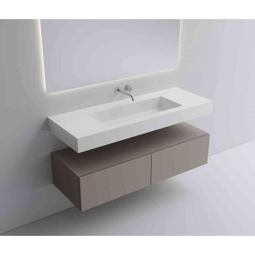 Umywalka pojedyncza na wymiar z matową białą powierzchnią do montażu ściennego, solid surface mineralny materiał VELVET STONE™(made in Italy). Różne wzory umywalek i możliwość personalizacji.