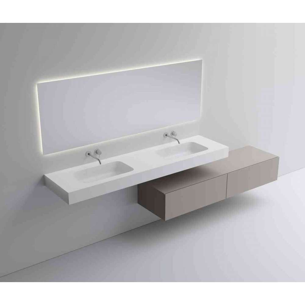 Umywalka podwójna na wymiar z matową białą powierzchnią do montażu na ścianie, solid surface mineralny materiał VELVET STONE™(made in Italy). Różne wzory umywalek i możliwość personalizacji.
