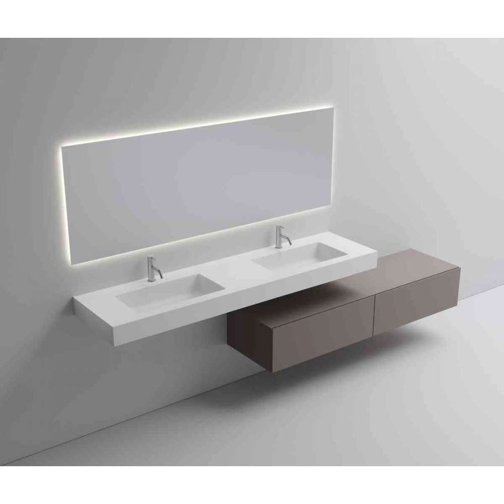 Umywalka podwójna na wymiar z matową białą powierzchnią do montażu na ścianie, solid surface mineralny materiał VELVET STONE™(made in Italy). Różne wzory umywalek i możliwość personalizacji.