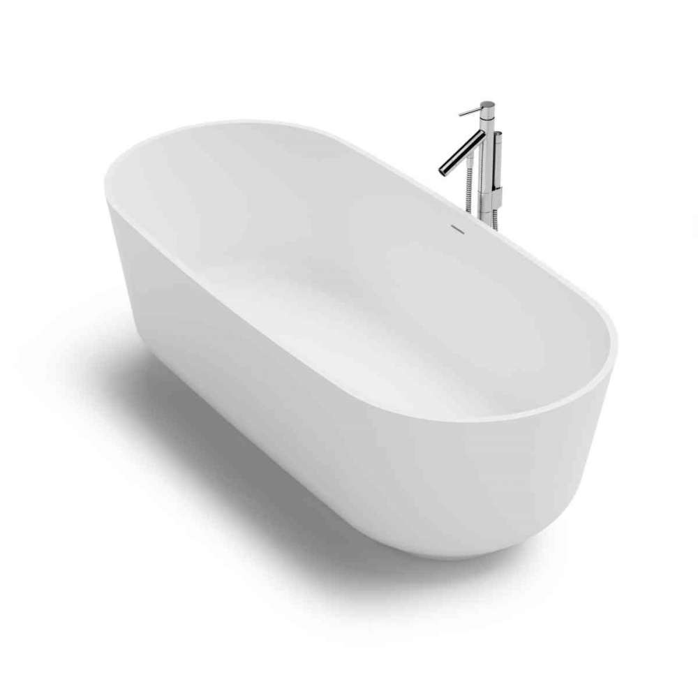 Wanna wolnostojąca z matowo-białą (alternatywnie: błyszczącą) powierzchnią, wykonaną z VELVET STONE™. Ręcznie uszlachetniana odlewana część wykonana z drobnego kamienia wapiennego i najwyższej jakości żywic.