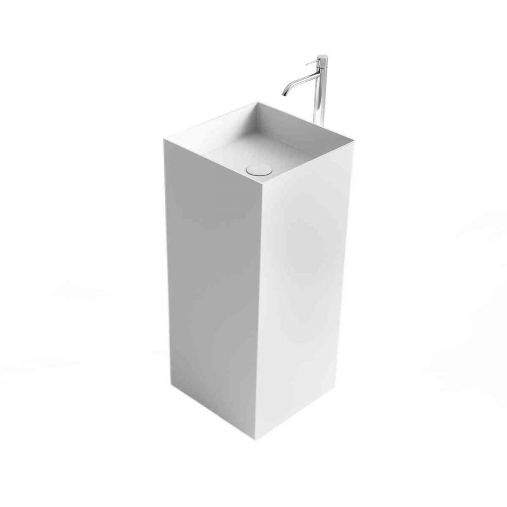 Wolnostojąca umywalka o matowo-białej powierzchni, wykonana z VELVET STONE™. Ręcznie uszlachetniana odlewana część z drobnego kamienia wapiennego i najwyższej jakości żywic.