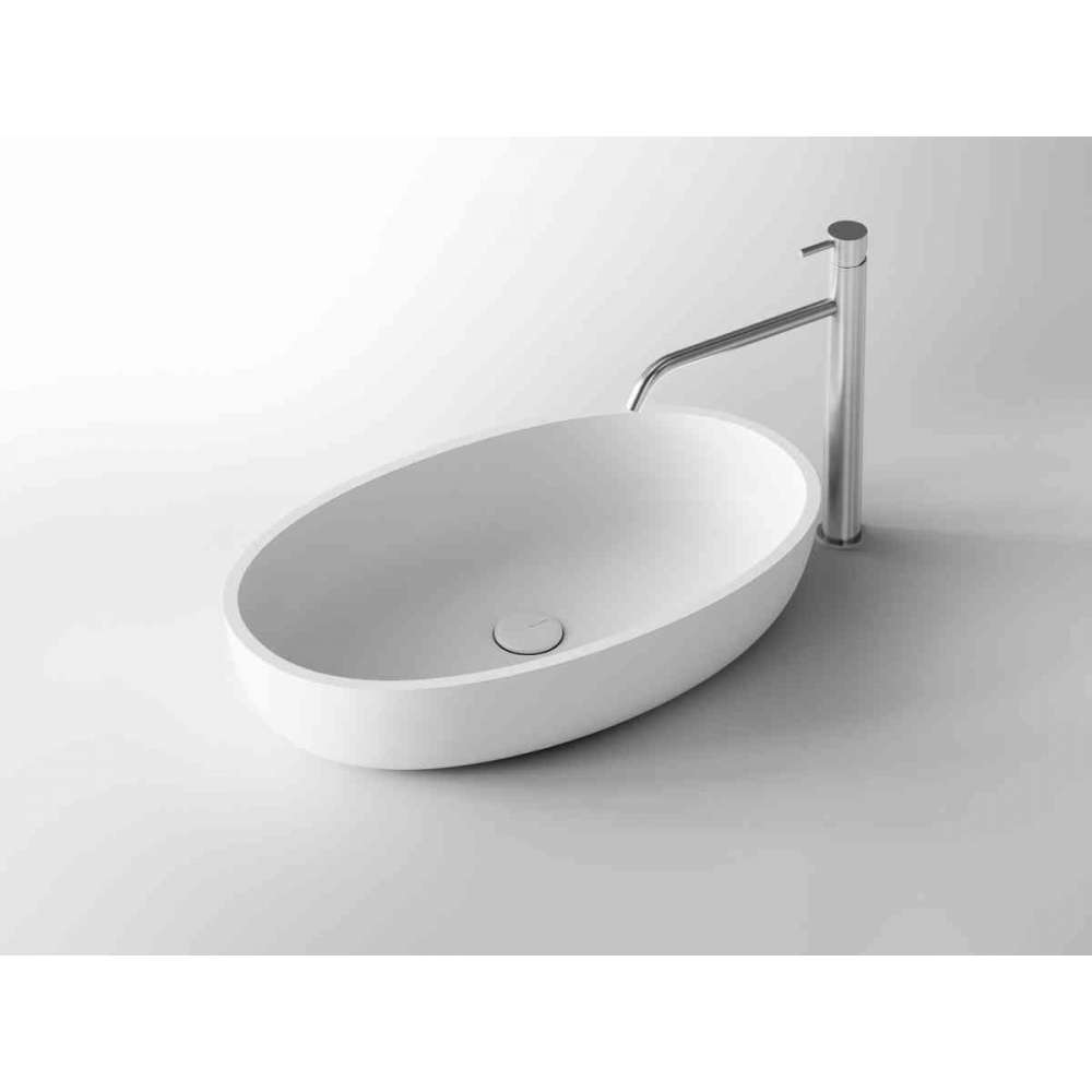 Umywalka o matowo-białej (alternatywnie: błyszczącej) powierzchni, wykonana z VELVET STONE™. Ręcznie uszlachetniana odlewana część wykonana z drobnego kamienia wapiennego i najwyższej jakości żywic.