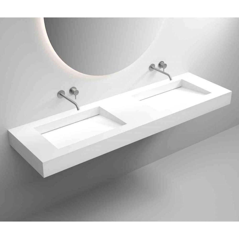 Umywalka designerska na miarę / konfiguracja na zamówienie / umywalka pojedyncza lub podwójna / z wyjmowanym blatem / ścienna lub zintegrowana z blatem / powierzchnia biała matowa / wykonana z wysokiej jakości materiału mineralnego CORIAN®.