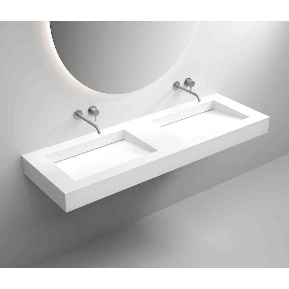 Umywalka designerska na miarę / konfiguracja na zamówienie / umywalka pojedyncza lub podwójna / z wyjmowanym blatem / ścienna lub zintegrowana z blatem / powierzchnia biała matowa / wykonana z wysokiej jakości materiału mineralnego CORIAN®.