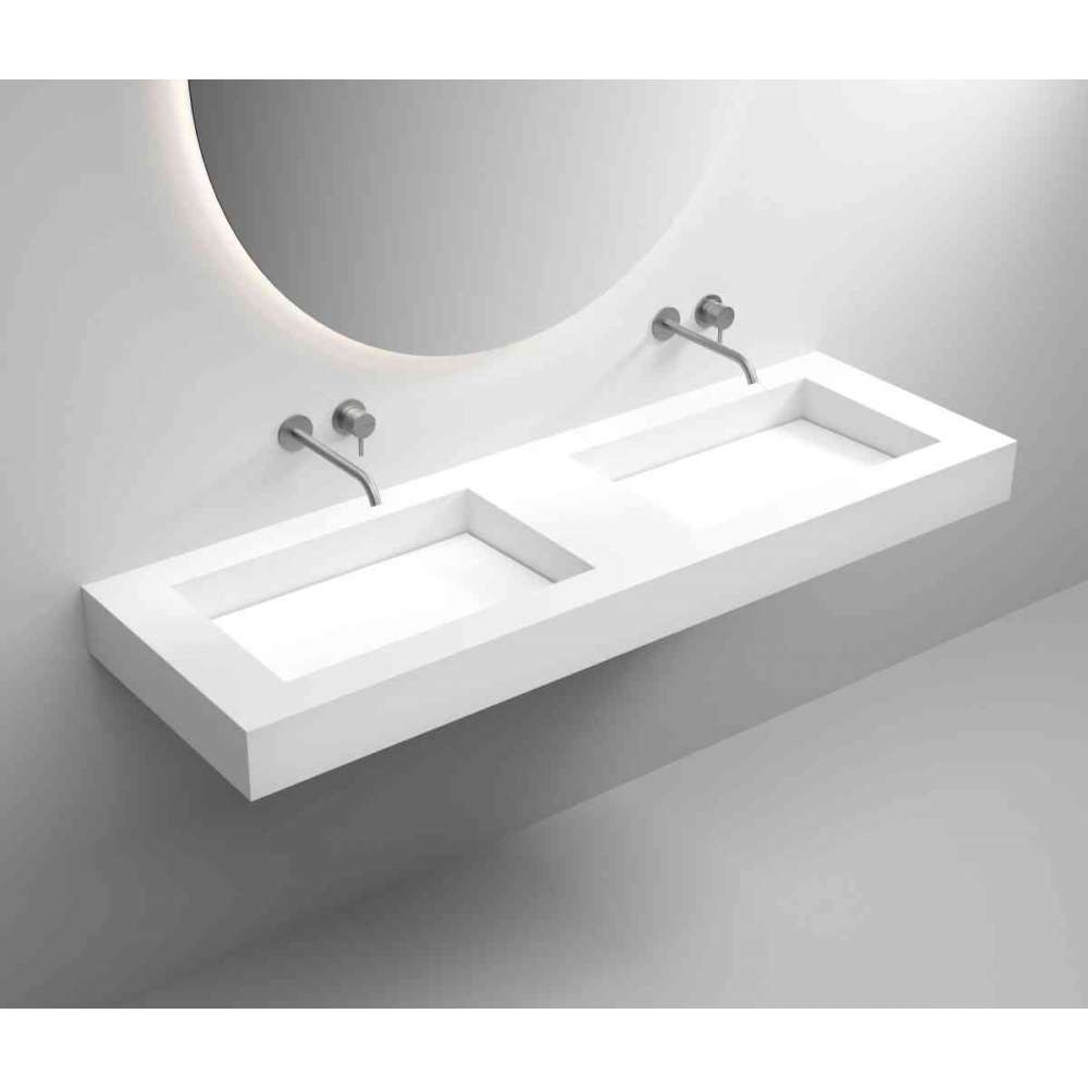 Umywalka designerska na wymiar / konfiguracja na zamówienie / umywalka pojedyncza lub podwójna / z wyjmowanym blatem / ścienna lub wbudowana w blat / powierzchnia biała matowa / wykonana z wysokiej jakości materiału mineralnego CORIAN®.