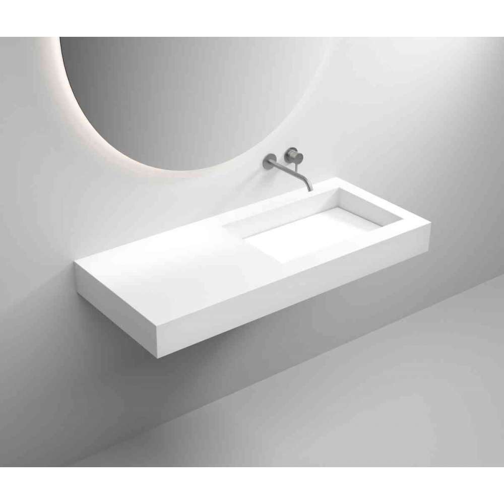 Umywalka designerska na wymiar / konfiguracja na zamówienie / umywalka pojedyncza lub podwójna / z wyjmowanym blatem / ścienna lub wbudowana w blat / powierzchnia biała matowa / wykonana z wysokiej jakości materiału mineralnego CORIAN®.