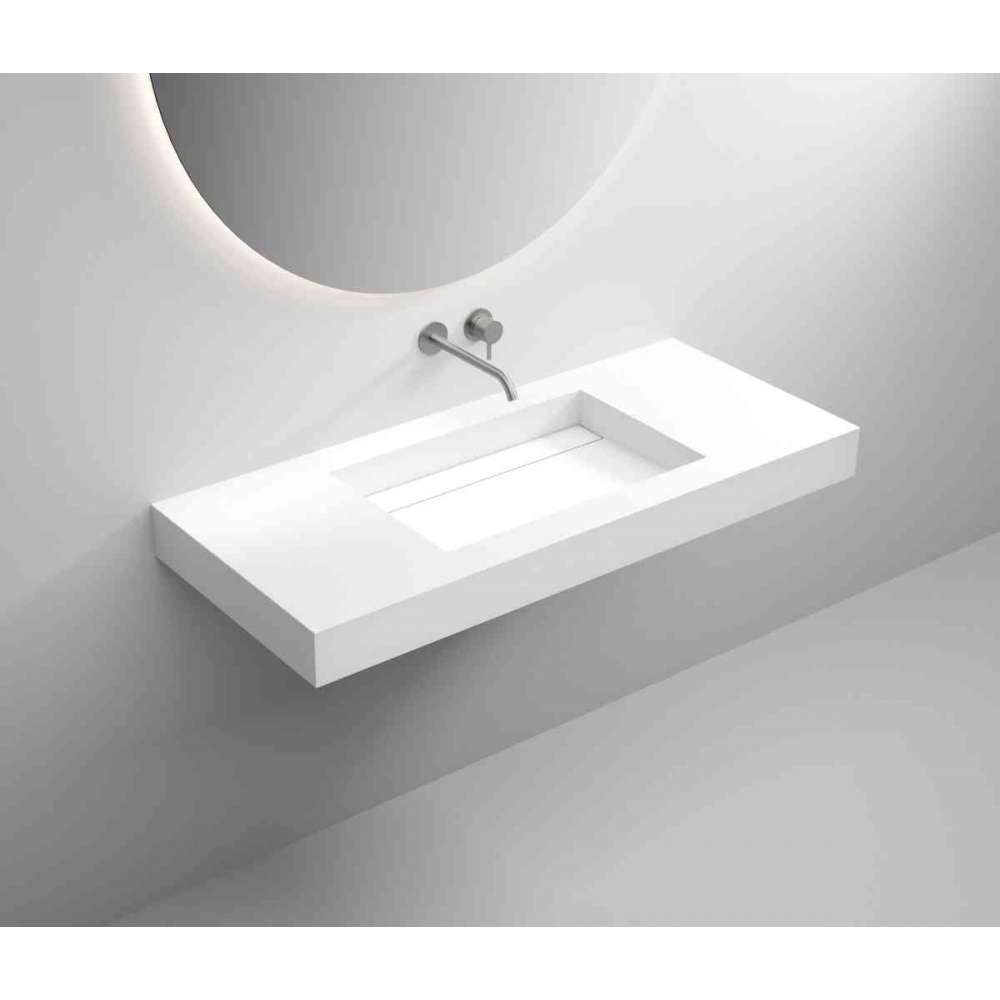Umywalka zaprojektowana na miarę / konfiguracja na zamówienie / umywalka pojedyncza lub podwójna / z wyjmowanym blatem / ścienna lub zintegrowana z blatem / powierzchnia biała matowa / wykonana z wysokiej jakości materiału mineralnego CORIAN®.