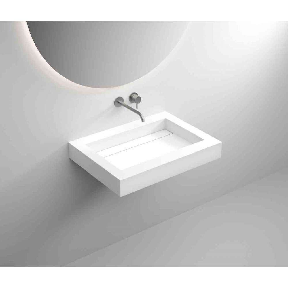 Umywalka zaprojektowana na miarę / konfiguracja na zamówienie / umywalka pojedyncza lub podwójna / z wyjmowanym blatem / ścienna lub zintegrowana z blatem / powierzchnia biała matowa / wykonana z wysokiej jakości materiału mineralnego CORIAN®.
