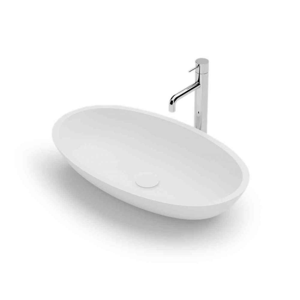Umywalka o matowo-białej (alternatywnie: błyszczącej) powierzchni, wykonana z VELVET STONE™. Ręcznie uszlachetniana odlewana część wykonana z drobnego kamienia wapiennego i najwyższej jakości żywic.