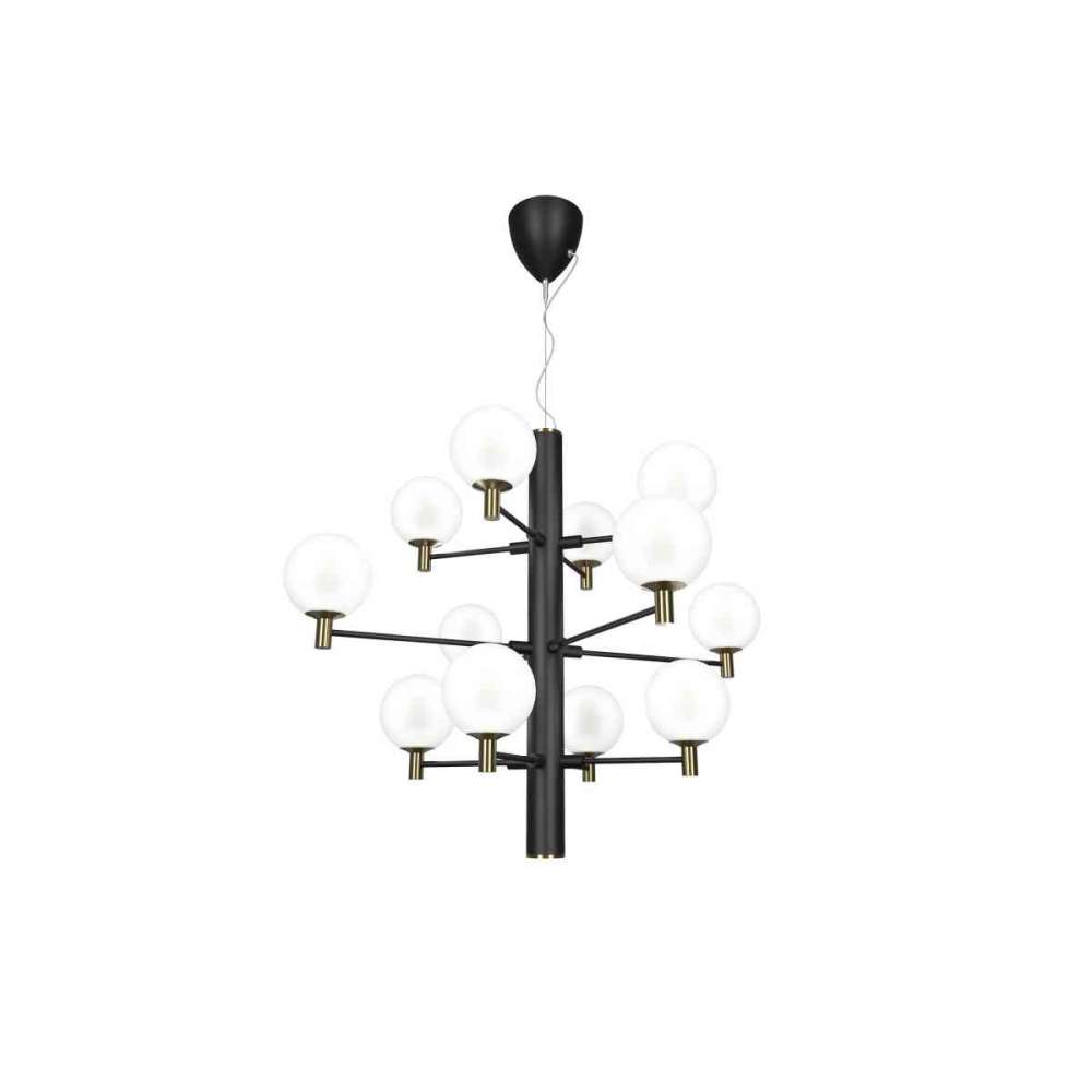 Średnica 70 cm, Wysokość 59 cm, 12 x G9 LED max 4W, Czarny / antyczny mosiądz / szkło opalowe