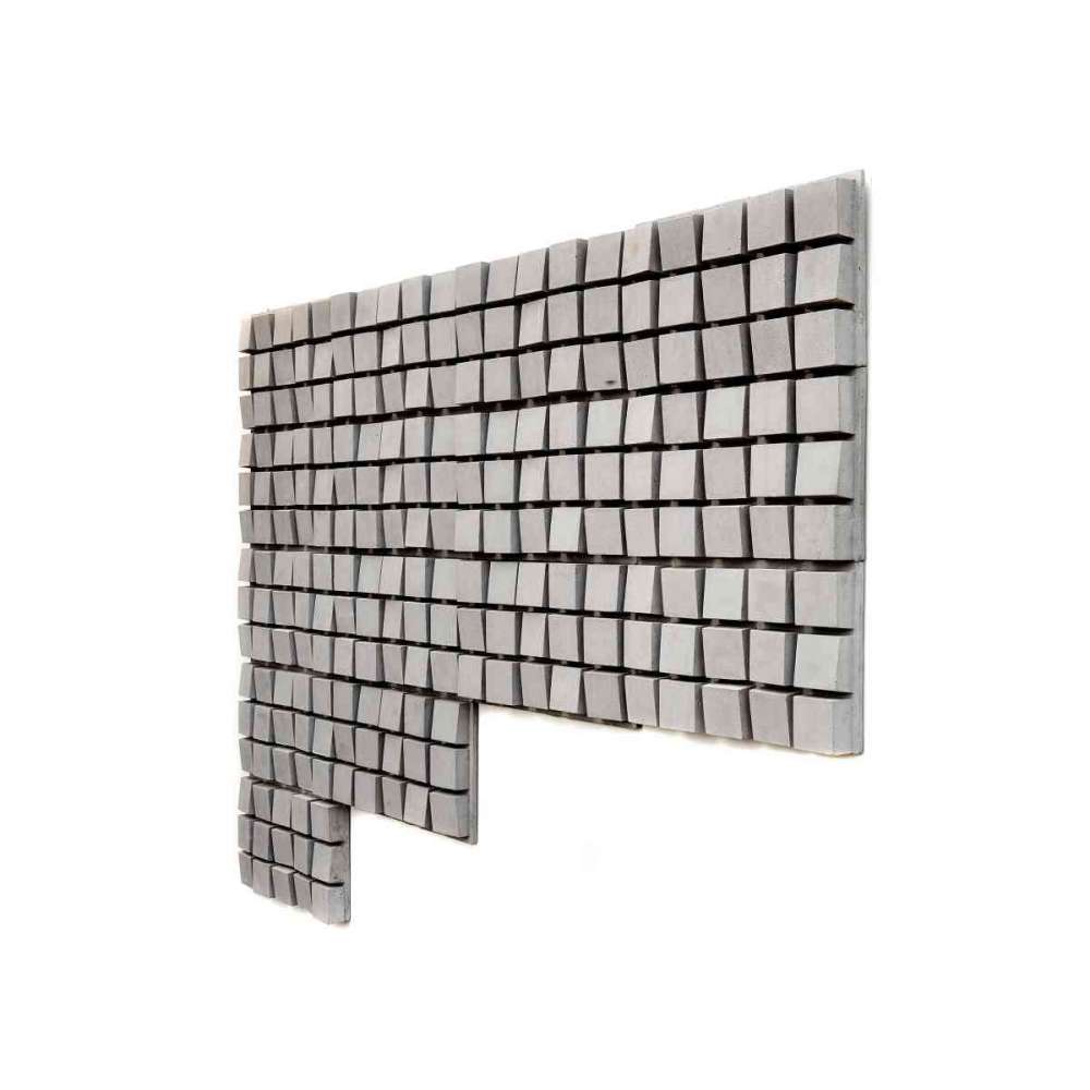 "PLANTED CUBES" betonowa płytka ścienna ma wygląd małych kostek (6X6cm) asymetrycznie i swobodnie ułożonych na ścianie. Efektem poszukiwanym po zamontowaniu tych płytek jest trójwymiarowy widok falistych kostek. Wymiary jednostki to 21X36cm, przy rosnącym wzroście grubości od 27 do 40 mm. Jego waga wynosi 4 kilo/szt. Kawałki mogą się różnić do ± 5% od siebie. Nadaje się do użytku na zewnątrz lub w pomieszczeniach.