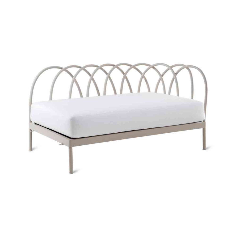 W tym roku sofie Les Arcs z drewna tekowego towarzyszy nowa linia aluminium inspirowana kultowym designem. Krzesła, stoliki i sofy reinterpretują detale historycznej linii, wzbogacając ją o nową modułowość, lekkość materiałów oraz nowe kolory na zamówienie za minimalną ilość. Konstrukcja: teak i rurki aluminiowe. Alumium