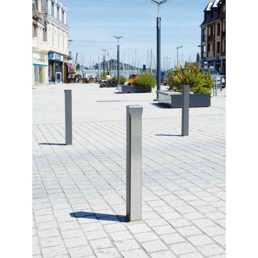 Malowana kwadratowa rura stalowa i korpus z blachy nierdzewnej o grubości 5 mm. Całkowicie wyjmowany system ze stali nierdzewnej, zamykany trójkątnym kluczem. W wersji wysuwanej system automatycznego resetowania sterowany kluczem trójkątnym. Stal: cynkowanie, a następnie wypalane poliestrowe malowanie proszkowe. Stal nierdzewna: szczotkowana. Pasek kontrastowy PRM. Wtyczka do systemu wyjmowanego 80, 110 i 170