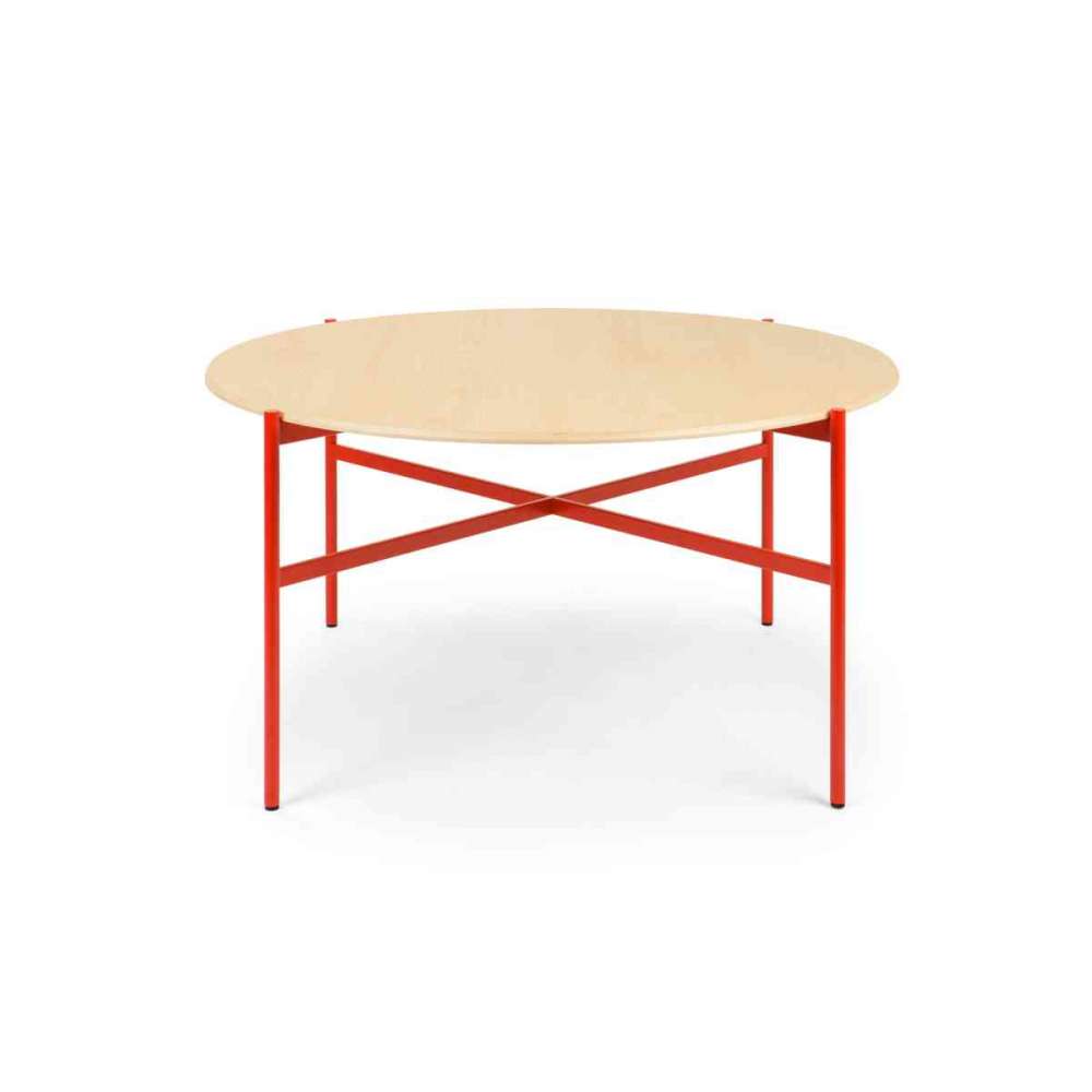 tworzy to wyraźny kontrast między masywnym wyglądem materiału a jego cienkim kształtem. Konstrukcja nośna z lakierowanego metalu, stworzona w wyniku tego samego poszukiwania lekkości, jest inspirowana tradycyjnymi stołami roboczymi i stołami roboczymi.