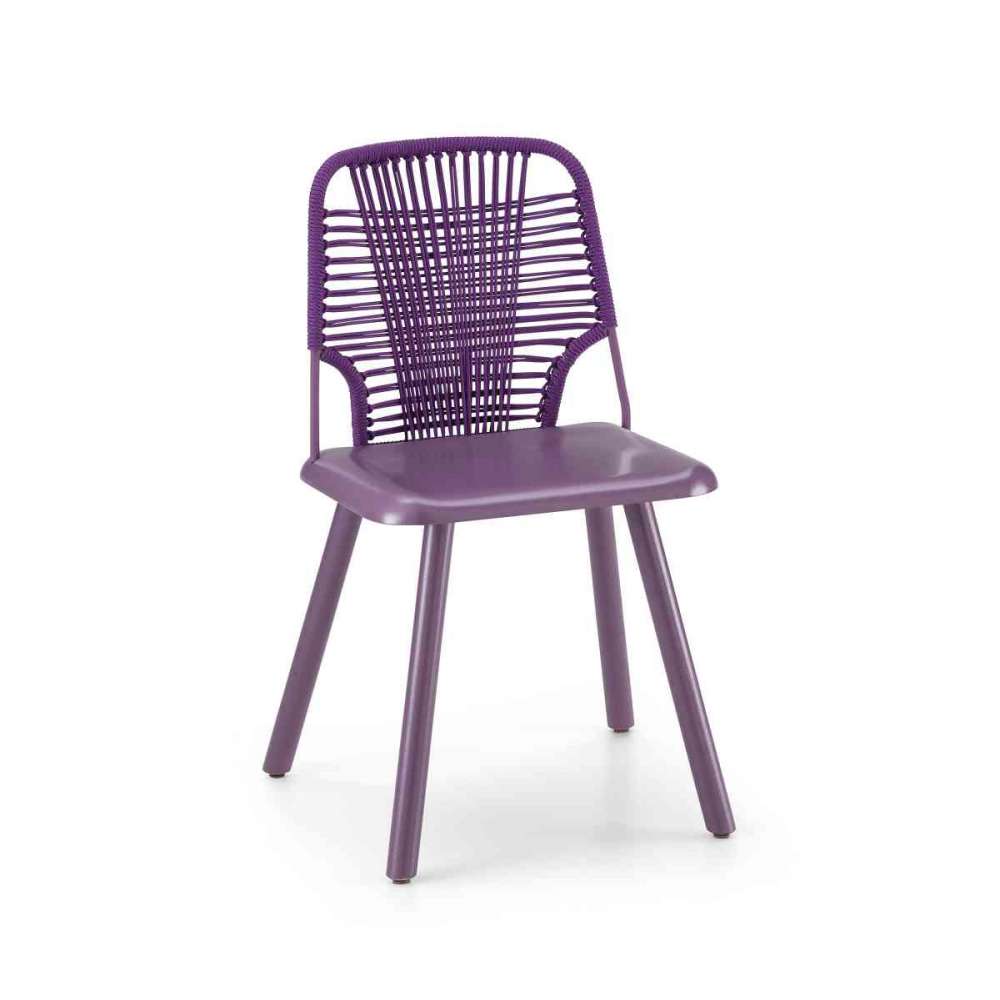 Krzesło o konstrukcji z litego drewna z oplotem linowym z tyłu, o szczególnym designie, który sprawia, że każde otoczenie jest wyjątkowe