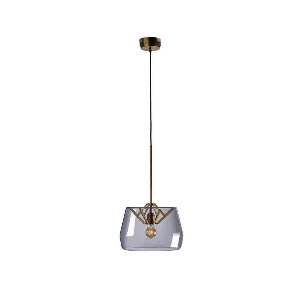 Klosz z ręcznie dmuchanego szkła utrzymywany przez pomysłowy mosiężny mechanizm zawiasowy. Atlas występuje w różnych rozmiarach i kolorach.