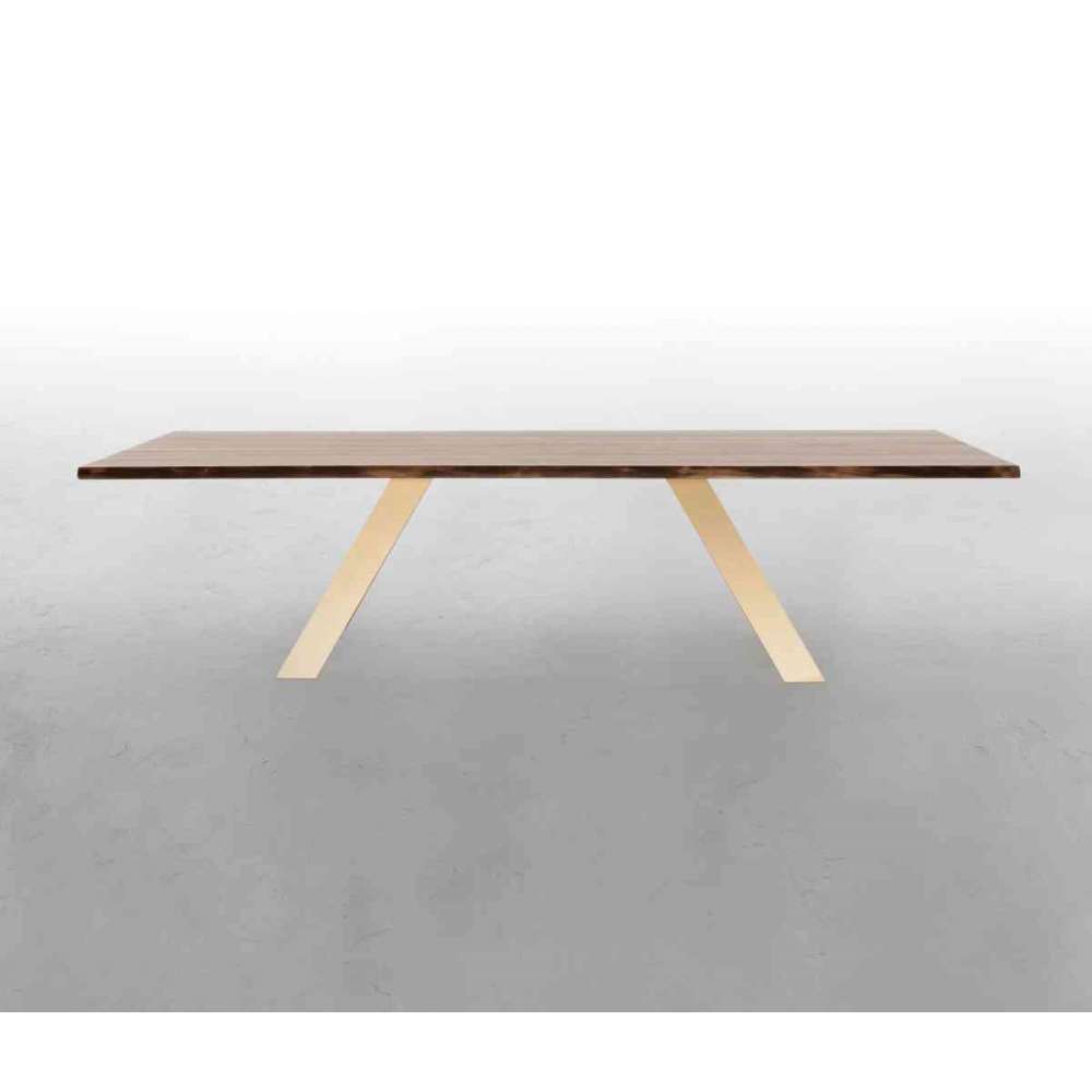 Wyrafinowany bohater, idealny towarzysz: Status to stół, połączenie kształtowanego metalu - nogi - i drewna - blaty. Jej złote, białe, szare lub agatowe krzywizny, tak lekkie i delikatne, jak ich proces produkcyjny, idealnie komponują się z drewnianymi blatami. Powstaje obiekt jednocześnie niezwykle lekki i żywy.
