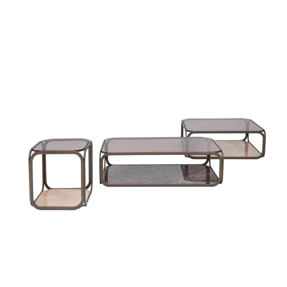 Pamiętając lata 60., narodziła się kolekcja Remind, wykonana z zakrzywionej metalowej ramy umiejętnie połączonej z brązowym szkłem i najlepszymi wykończeniami z porcelany.