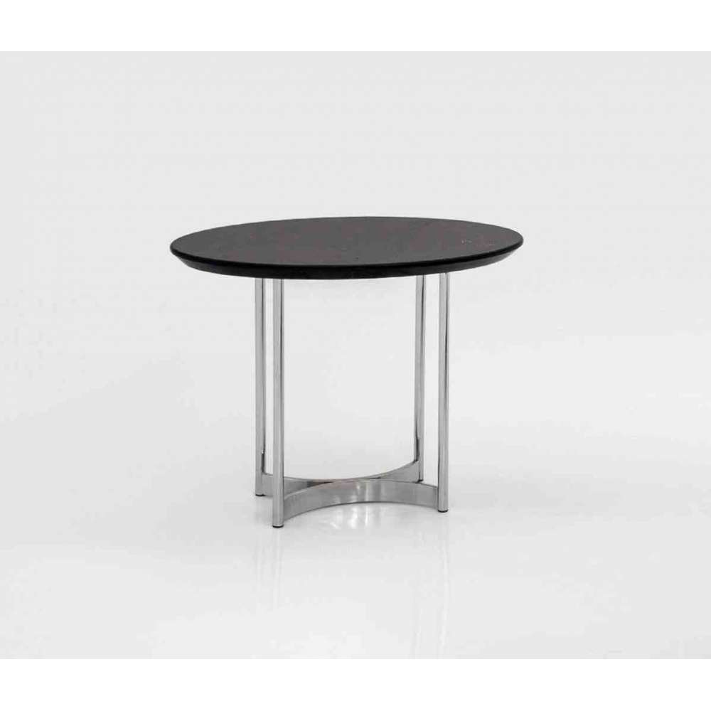 Stolik kawowy lub stolik pomocniczy z metalową chromowaną podstawą i eliptycznym blatem z białej Carrary, czarnej Marquinia lub szarego marmuru. Prestiż marmuru łączy się z chromowanym metalem, oferując bardzo elegancki produkt okazjonalny.