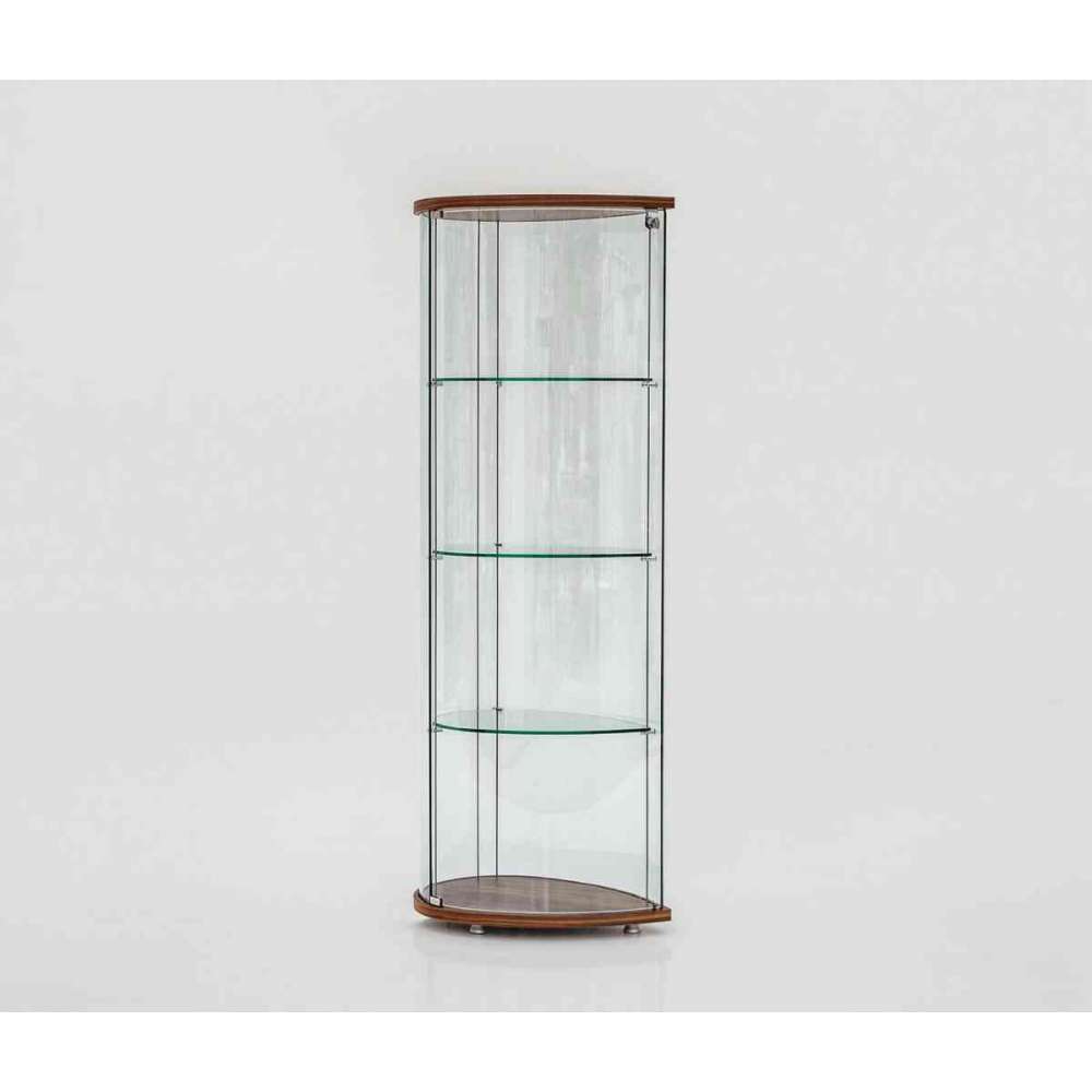 Drewniana przeszklona szafka z drzwiami i tylnym panelem z giętego szkła. Dostępne w różnych wykończeniach iz wewnętrznym oświetleniem LED. Zainspirowana kształtem kropli Olivella nadaje Twojej hucie szkła większą wartość.