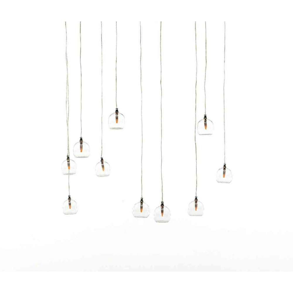 Ming składa się z dziesięciu lub dwudziestu lamp zawieszonych na różnych poziomach, aby stworzyć efekt świetlny zarówno funkcjonalny, jak i fascynujący pod względem estetycznym. Płyta sufitowa, idealne koło, podtrzymuje pozornie niewidoczne akordy, które kończą się słodkim, przezroczystym lub przydymionym szklanym kubkiem.